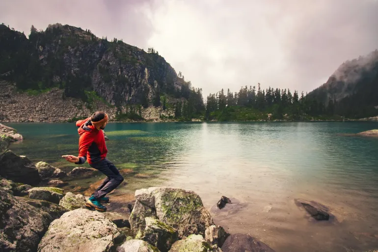 - 2 YKK® zipped hand pockets, one of which doubles as an integrated stuff sack with harness attachment loop