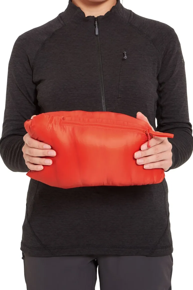 With a fresh design that’s warmer than previous versions, the updated Rab Women’s Cirrus Alpine features new, 100% recycled polyester PrimaLoft Silver Rise insulation. Wider baffles accommodate even more insulation, while also allowing it to fully loft.