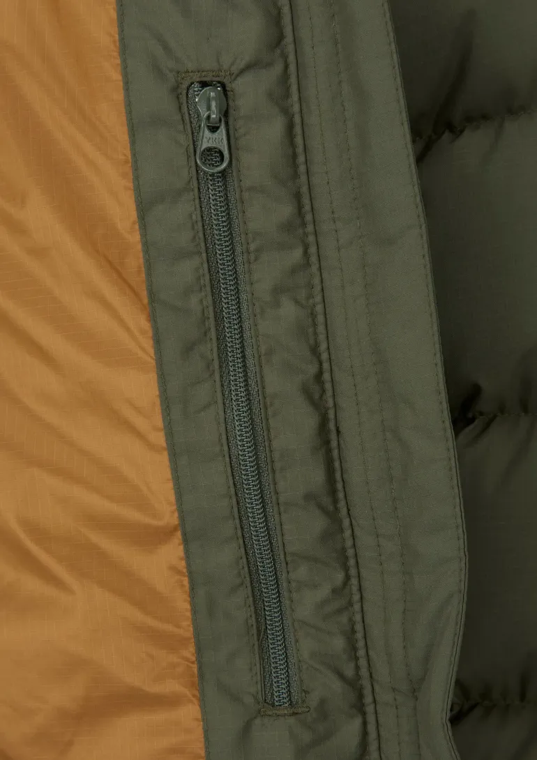 Recycled 30D nylon Pertex Quantum – Uses an ultra-thin, water-resistant coating to provide increased weather resistance for use in extreme conditions. Maximises thermal efficiency of insulation.