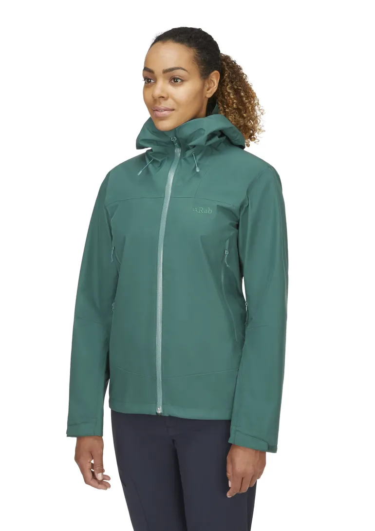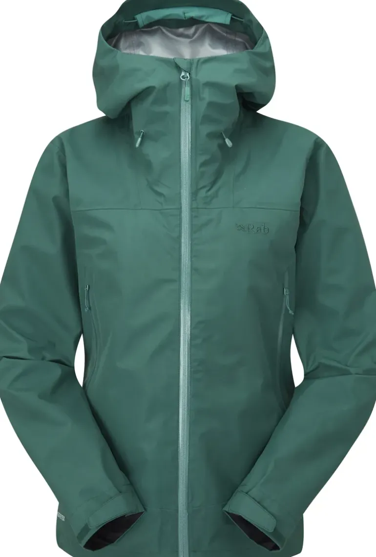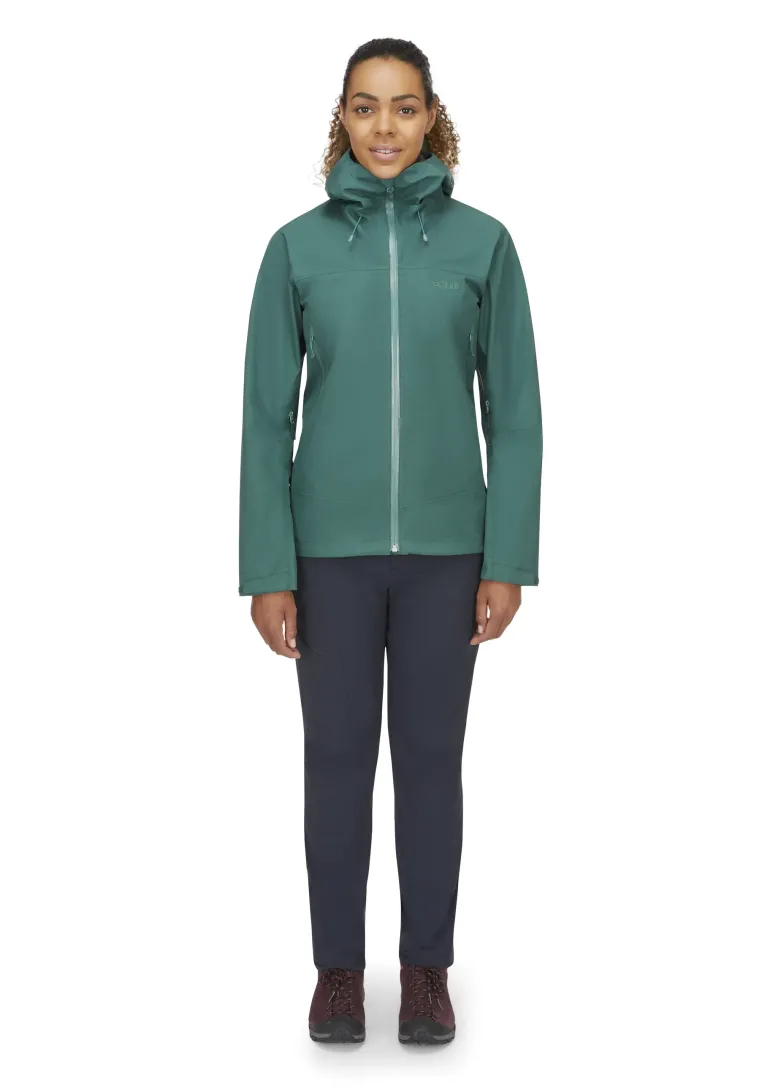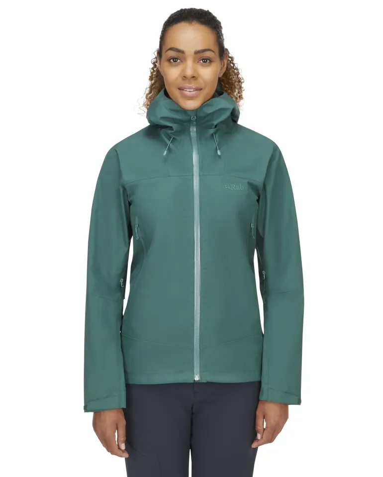 TheRab Women’s Namche GTX is built with fully recycled, fluorocarbon-free fabric, a ground-breaking fluorocarbon-free membrane, and a solution-dyed backer created using less energy than traditional dying methods. The result is a high performing waterproof jacket that is responsibly built and built to last, combining expert waterproof protection with low weight, packability, and superb freedom of movement for your everyday hiking adventures.
