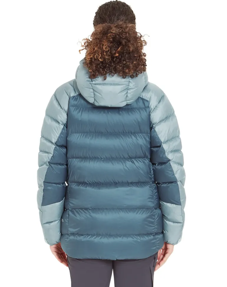 - Fully adjustable, helmet compatible down-filled hood with stiffened peak for increased protection