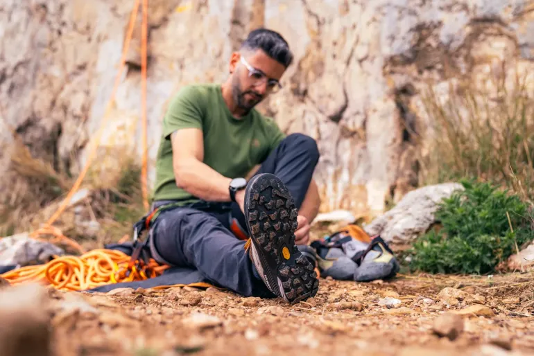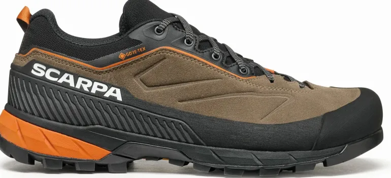 Every detail is studied to ensure grip, comfort, and protection such as the all-around TPU rand. The new GORE-TEX ePE guarantees high technical performance with low environmental impact. The sole is Vibram® MegaGrip with climbing zones at the toe and Brake System in the back, ensuring stability and grip. The innovative shape, wide and ergonomic at the toe, is designed to follow the conformation of the foot.