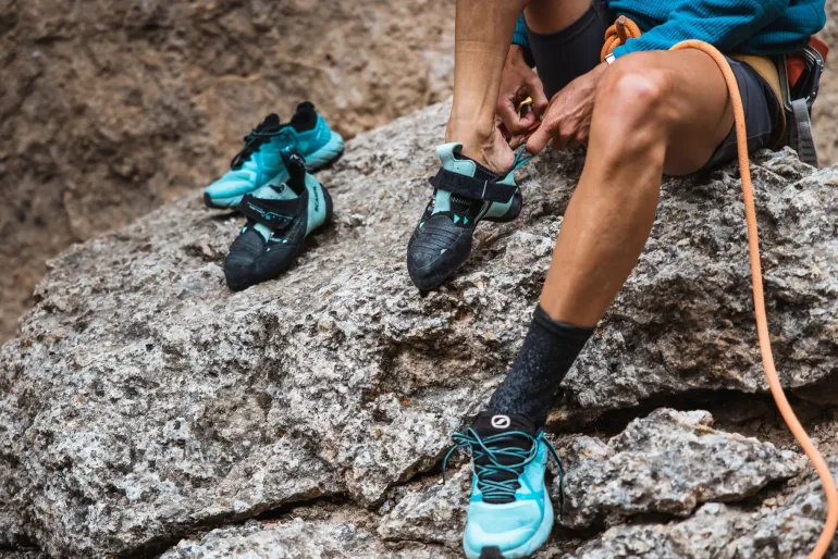 A 2mm, hand-crafted Vibram XS Grip 2 heel combined with velcro straps keep the heel of the shoe firmly secured to your foot even on the most demanding heel-hooks with the new toe rand design providing durable performance on toe-hooks.