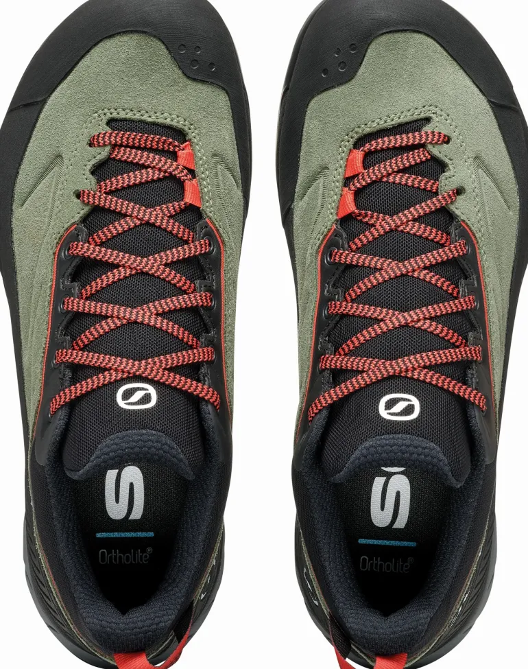 Every detail is studied to ensure grip, comfort, and protection such as the all-around TPU rand. The new GORE-TEX ePE guarantees high technical performance with low environmental impact. The sole is Vibram® MegaGrip with climbing zones at the toe and Brake System in the back, ensuring stability and grip. The innovative shape, wide and ergonomic at the toe, is designed to follow the conformation of the foot.