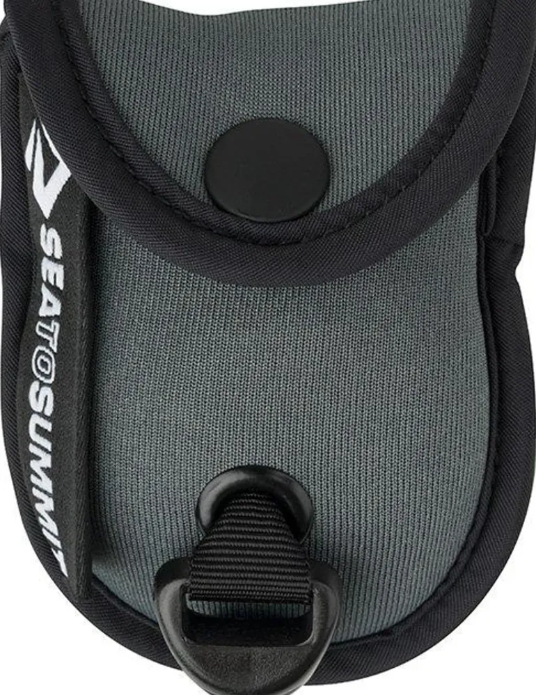- Stows away in the tiniest neoprene pouch