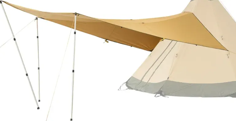 Easy to attach and remove without taking down the tent, the canopy attaches via the accessory sleeve located above the door and using the supplied three poles, it can be pegged out in place using the guylines. It offers you a dry entry by diverting any rain water from the door and provides a protected dining area outside your tipi.