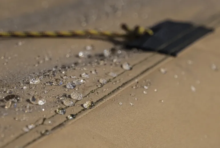 The Cotpolmex C is a strong and well-ventilating cotton/ polyester fabric which gives an indoor climate far superior to that of a normal tent. The natural colour creates a warm, pleasant atmosphere, and it is quiet, allowing you to get a good night’s sleep. This fabric is designed for 3-4 week annual use, making it a good option for family camping.