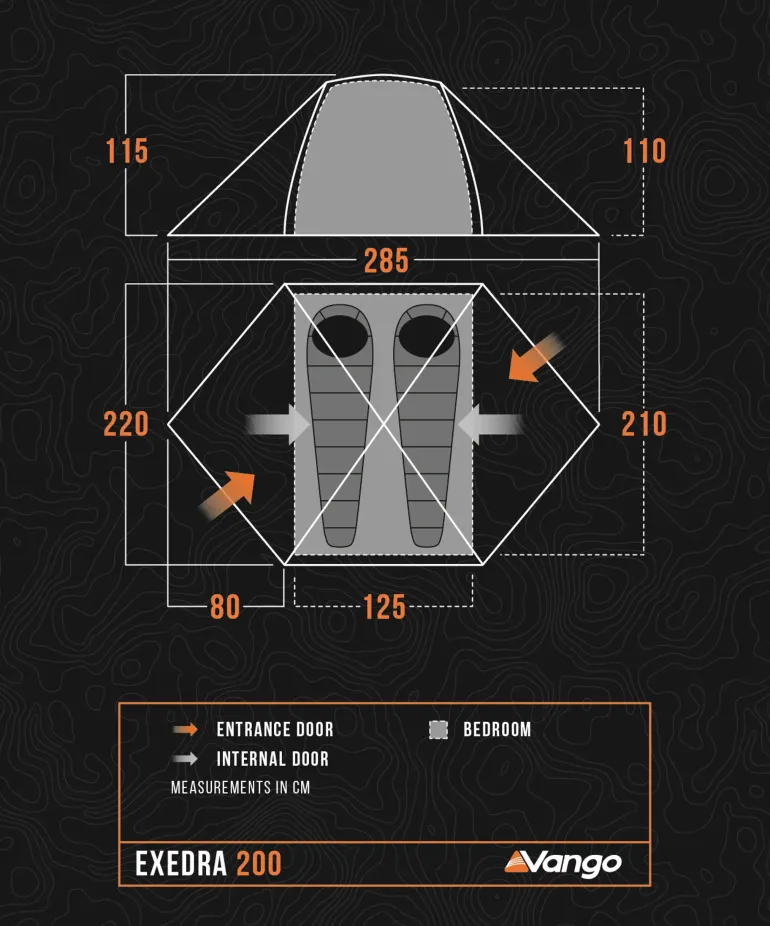 The Vango Exedra 200 is a lightweight, compact, yet spacious 2 person dome tent designed for hiking and backpacking adventures. Designed for up to two backpackers, or a solo camper looking for more room.