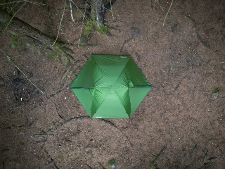 The hubbed 2 pole plus brow design provides amble internal volume with a reduced pack size and weight compared with other constructions. Poles crossover and connect via an Axial hub to create a strong, stable structure. The inner pitches first for rapid setup and takedown. This inner can also be pitched inner only in warmer conditions.