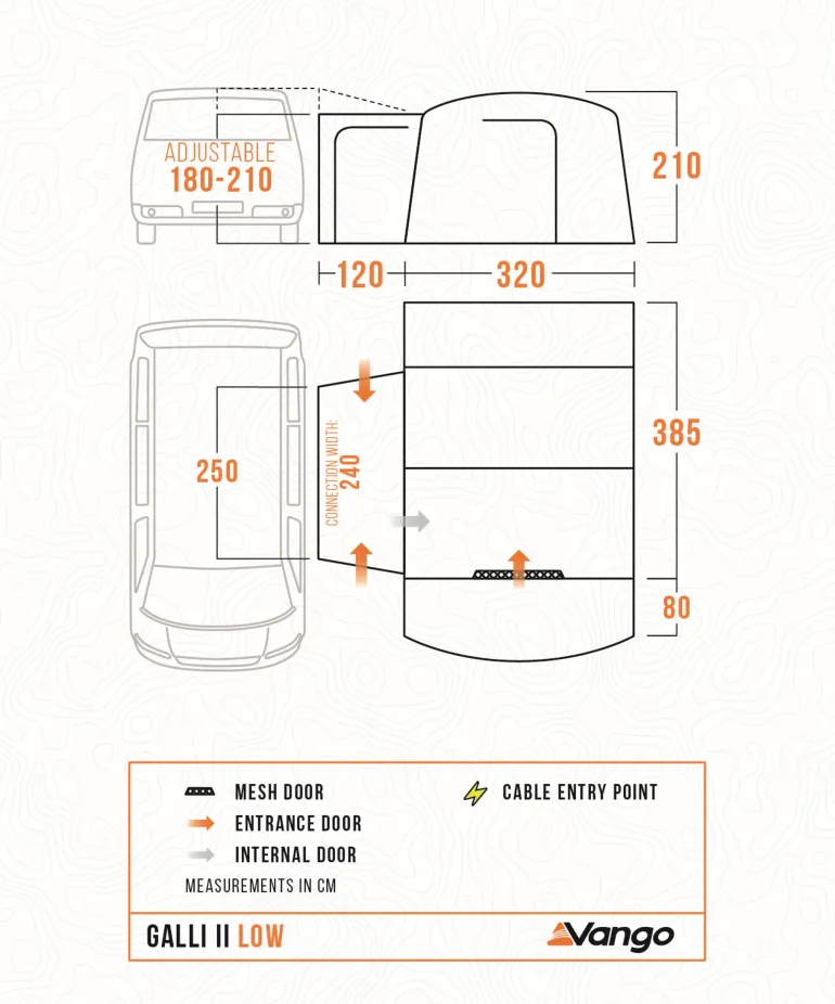 Designed to fit campers and van conversions with an attachment height of 180cm-210cm, this awning can be attached to your vehicle via various attachment options. This awning comes complete with a 260cm long, 6mm Kador connector strip, a pole sleeve, Velcro tabs and webbing straps, allowing this awning to be attached to all vehicles.