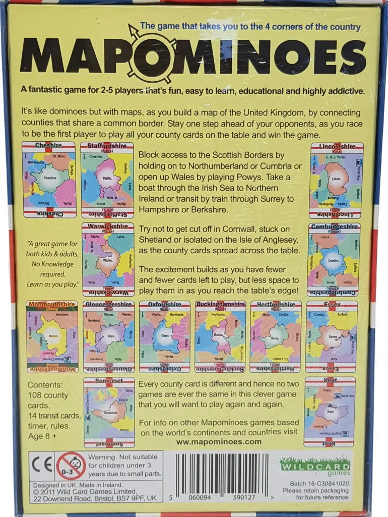 It’s like dominoes but with maps, as you build a map of both countries and continents, by connecting counties, states or countries that share a common border. Stay one step ahead of your opponents, as you race to be the first player to play all your cards onto the table and win this geography game.