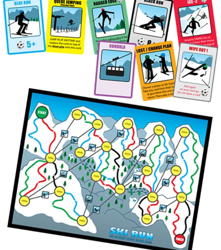 Pick your route across the piste map board by riding up lifts and racing down runs, whilst trying not to Wipe Out! Will you take the easy blue, the intermediate red or the more direct but difficult black run?